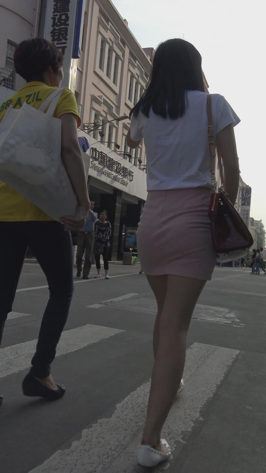 街拍粉色包臀裙小清新妹纸 编号2433