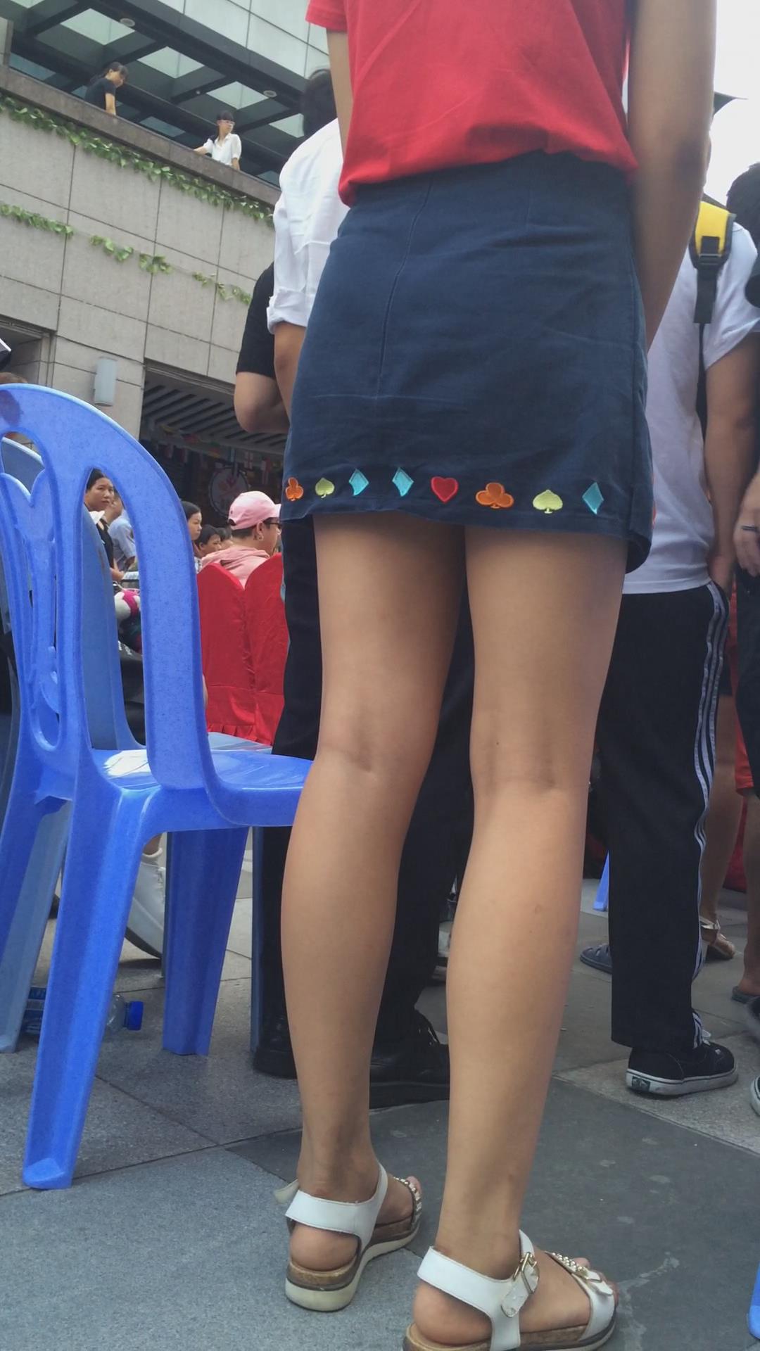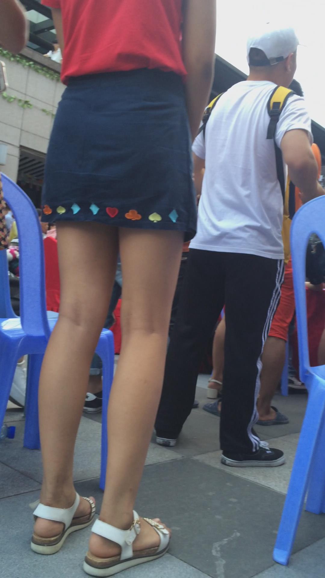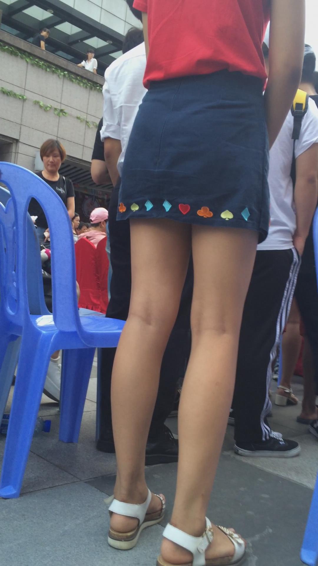 红衣蓝色小短裙美女在看什么呢 编号2442