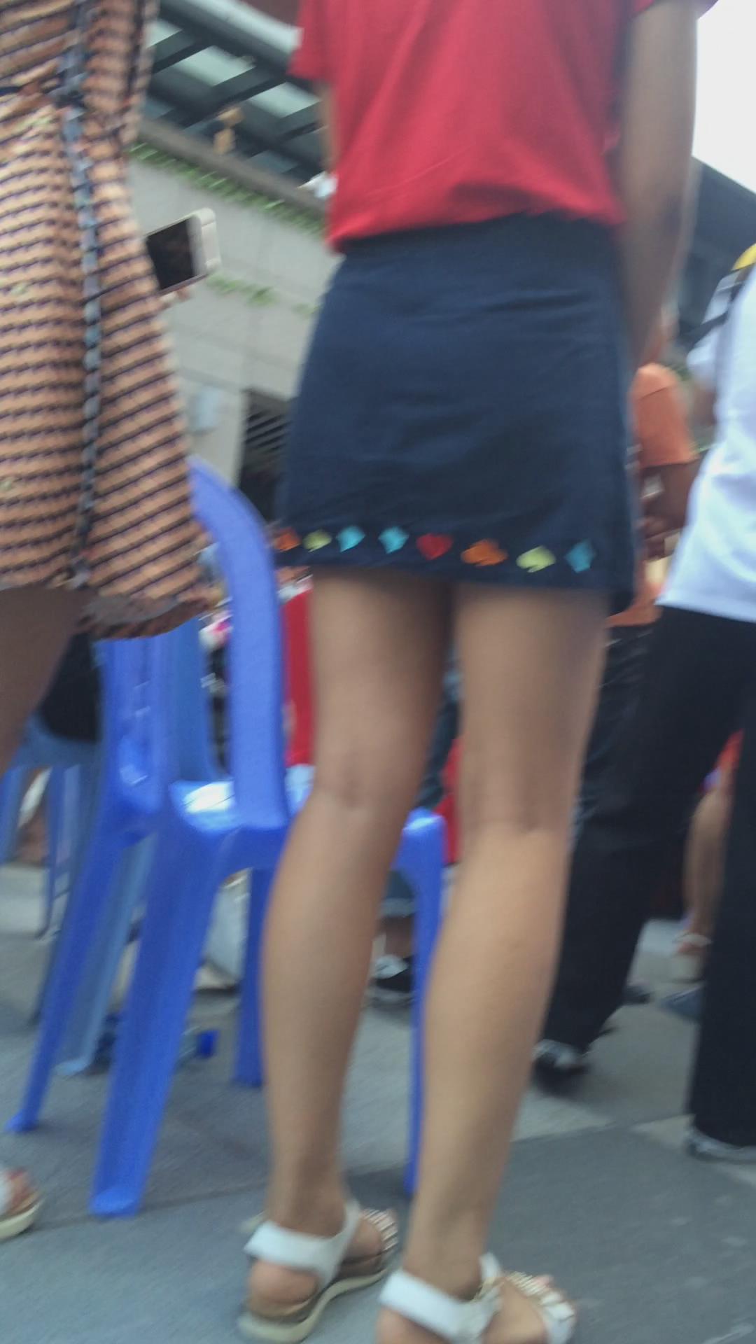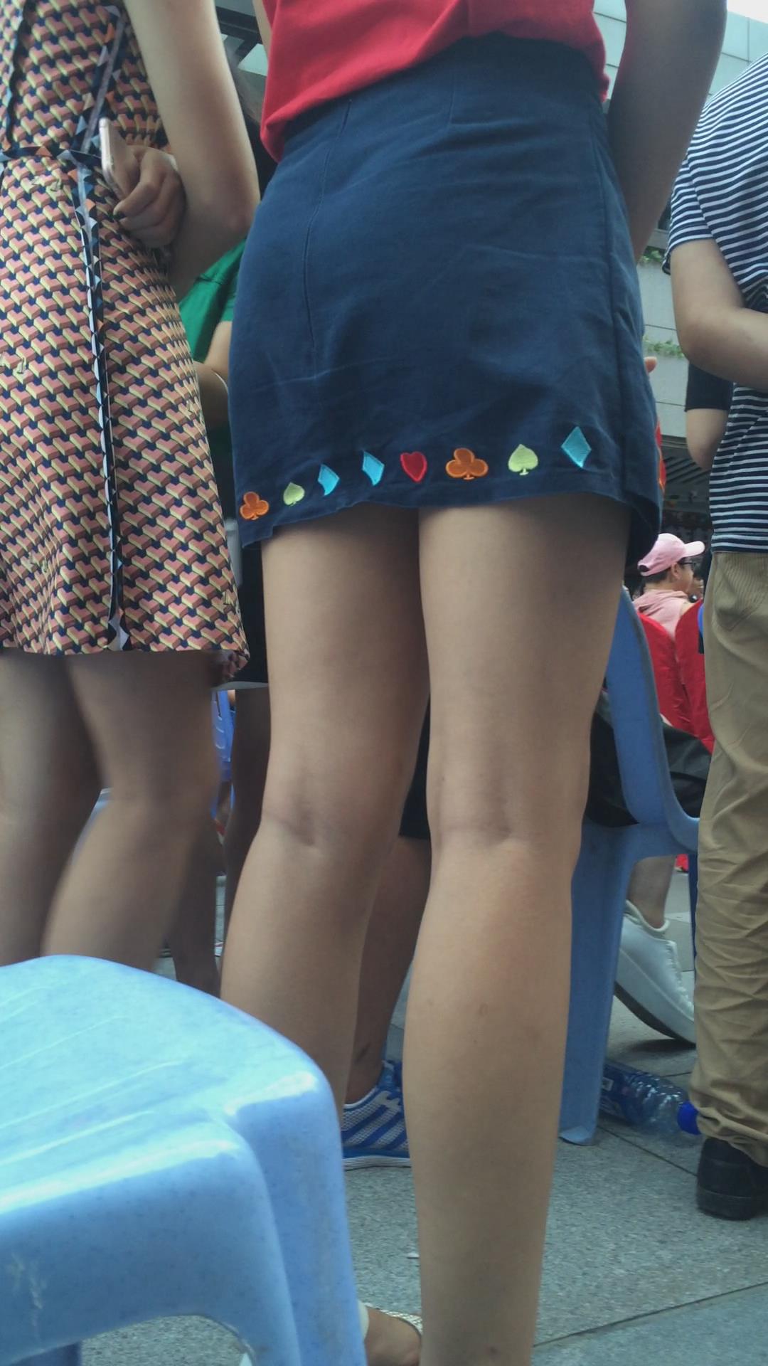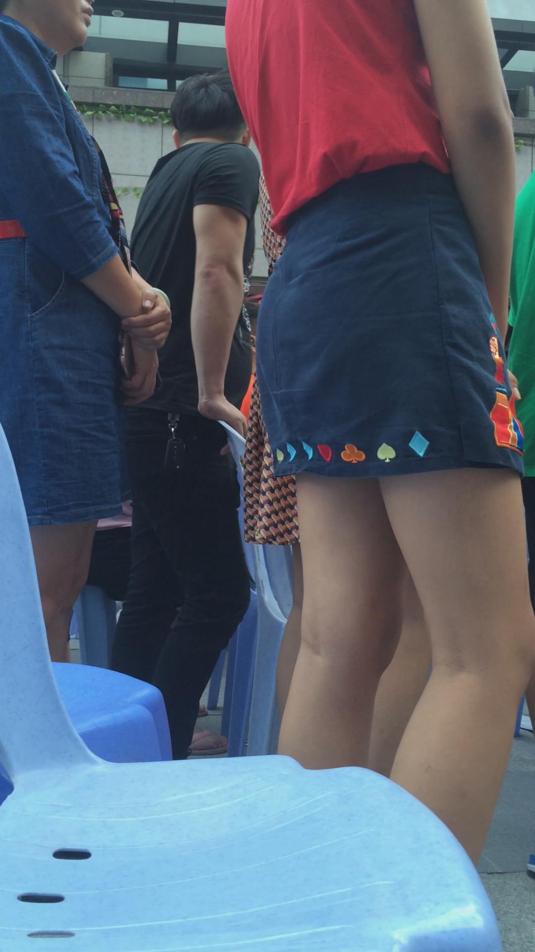 红衣蓝色小短裙美女在看什么呢 编号2442