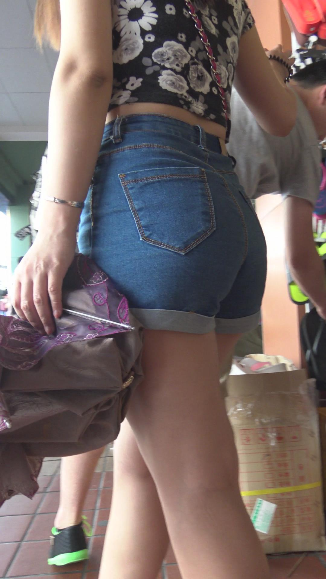 街拍高腰热裤苹果臀美女,这臀极品 编号4664