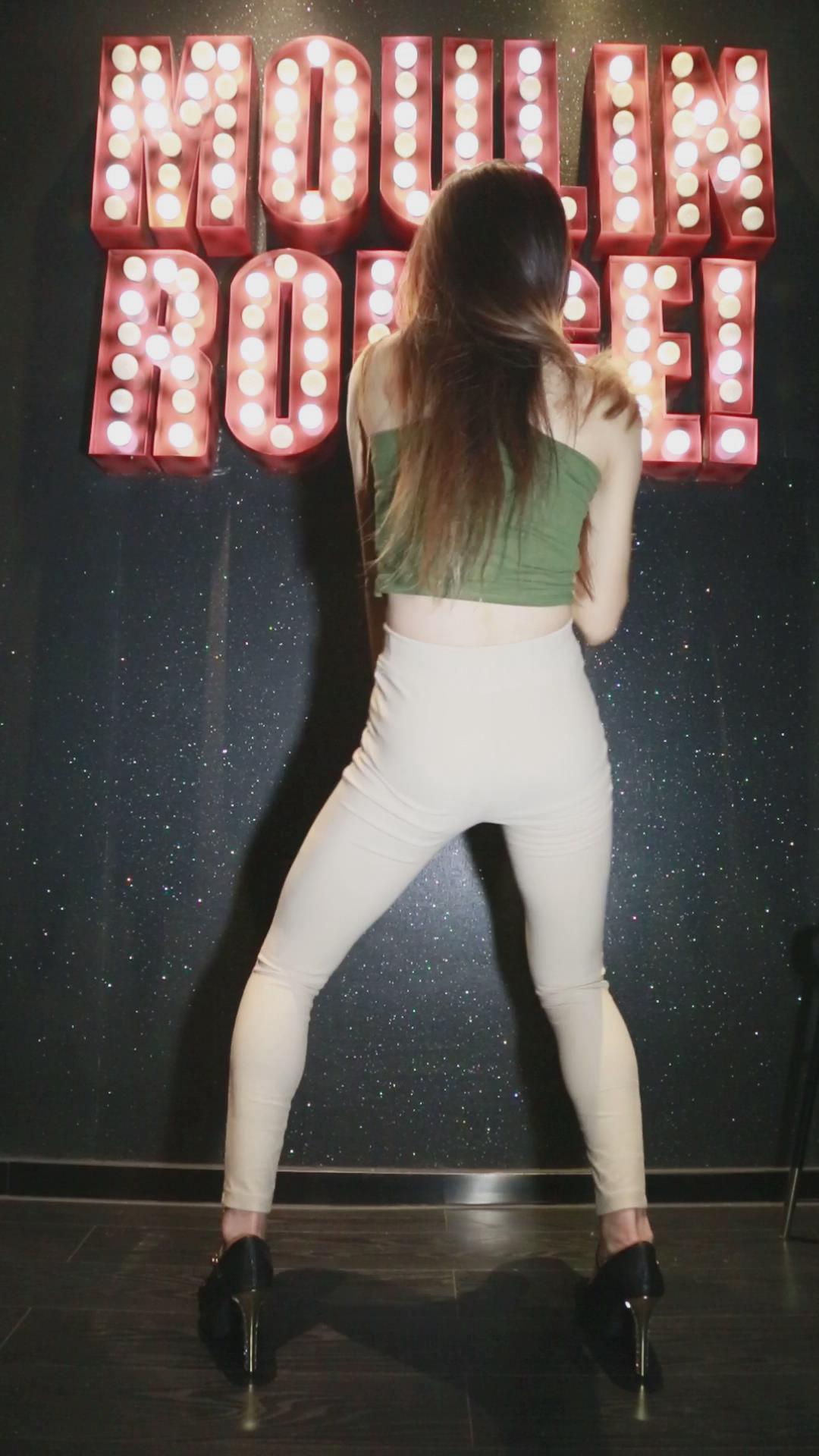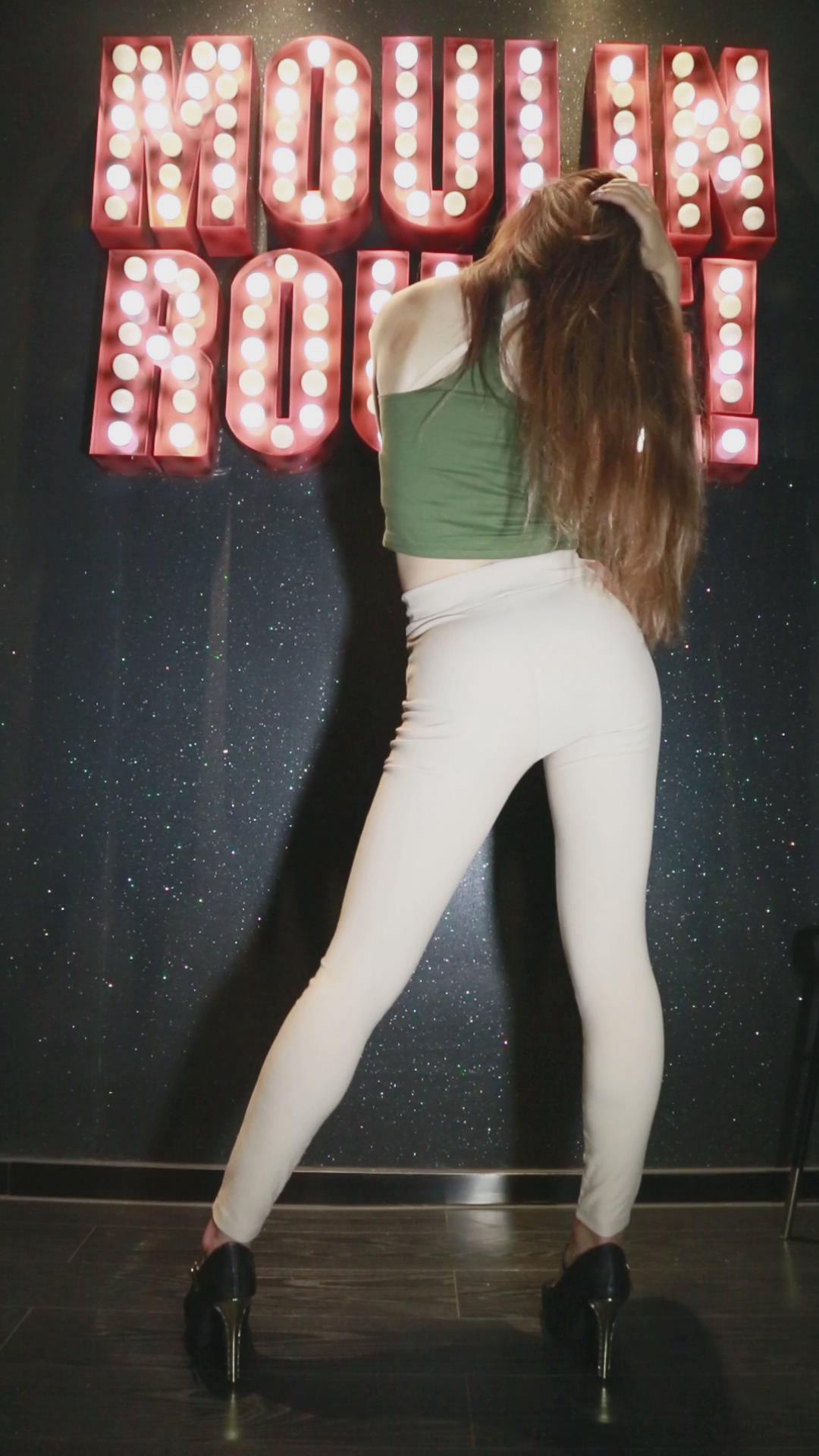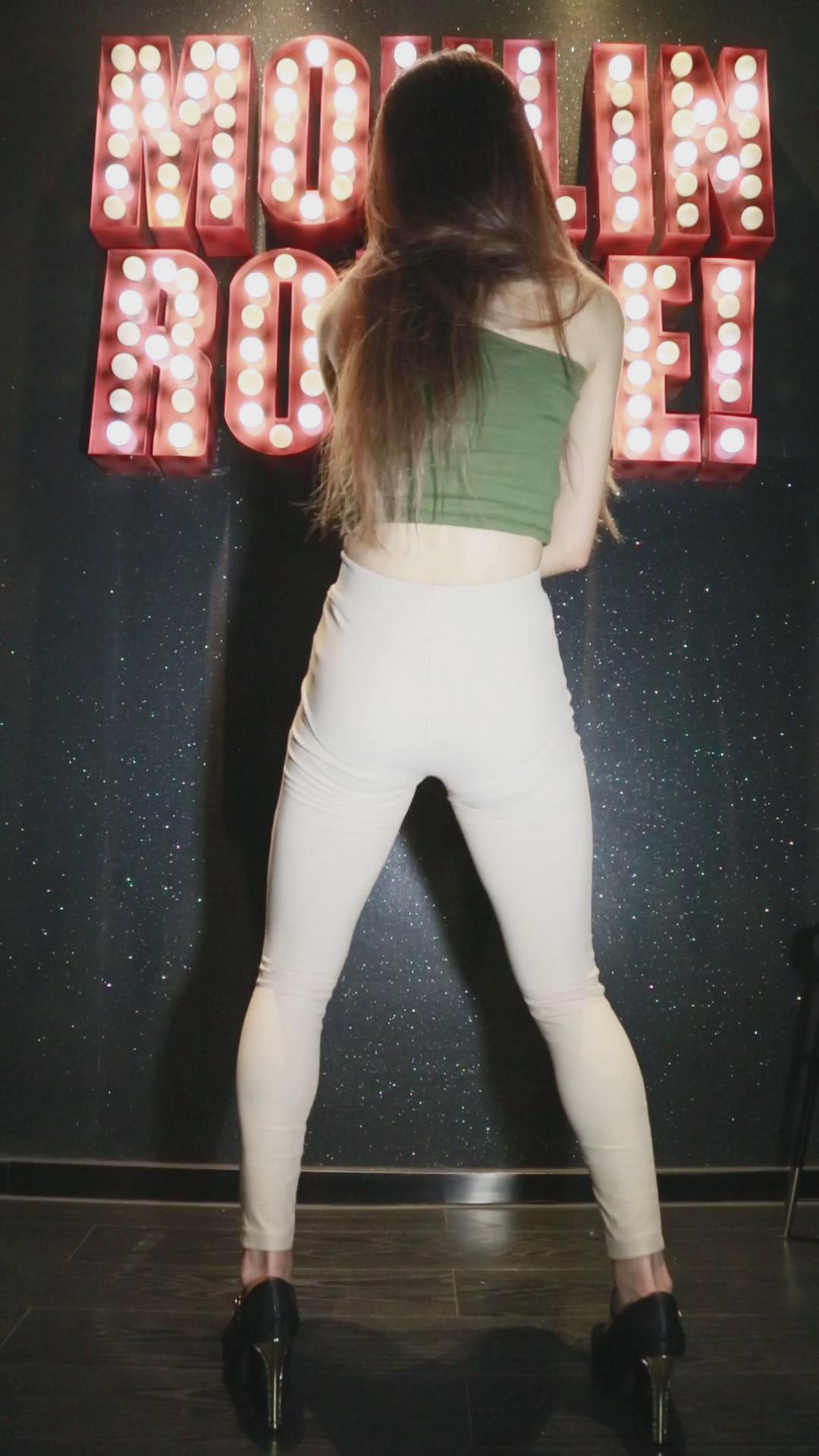 紧身白裤苹果臀美女背面模拍慢摇视频 编号6706