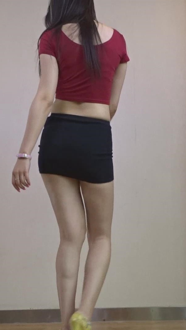 红衣超短包臀裙性感高跟鞋美女模拍视频 编号6768