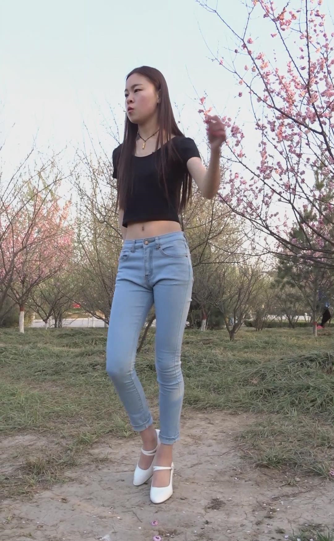 紧身蓝色牛仔裤长腿长发美女姐姐模拍视频 编号6780
