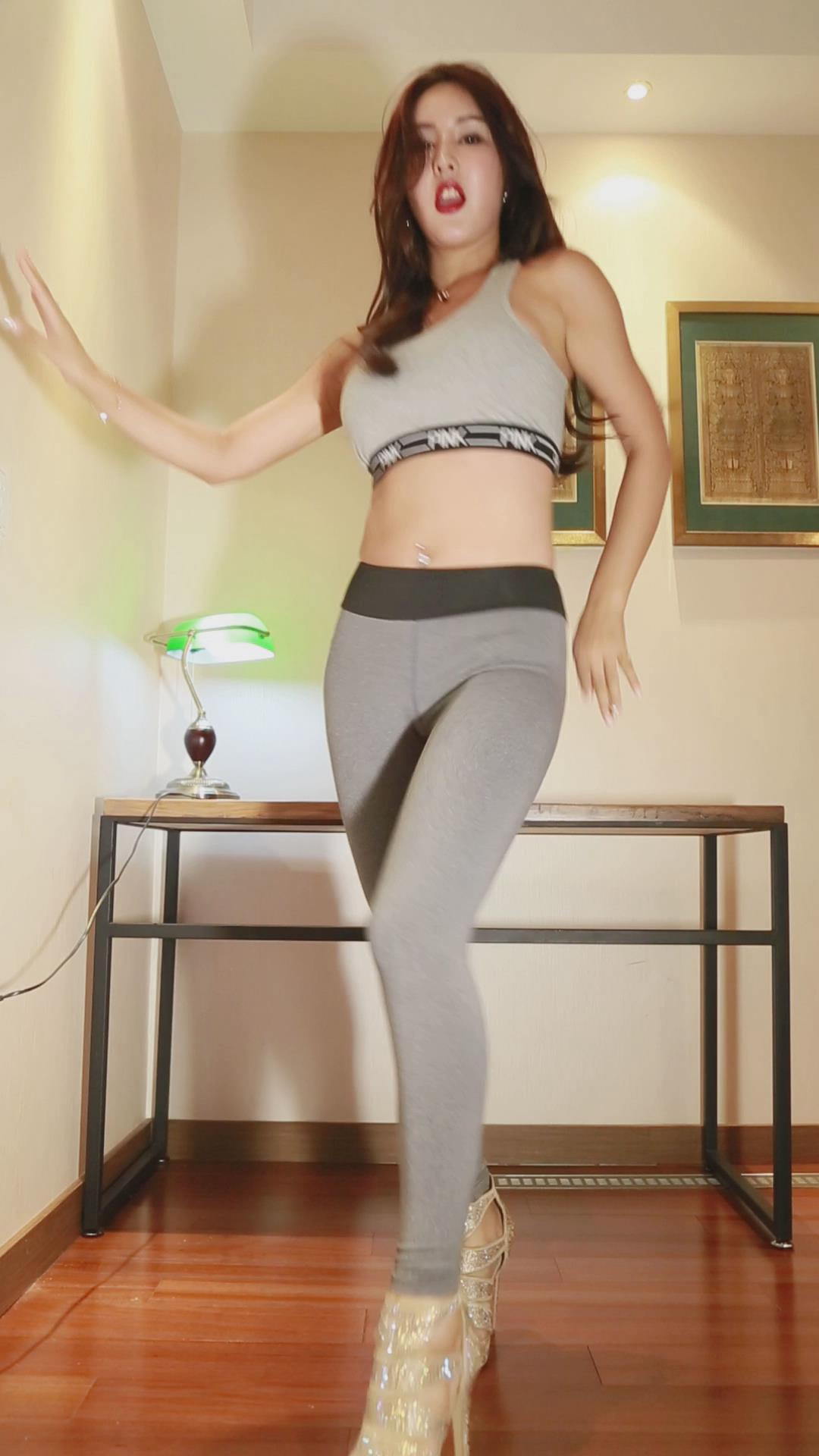 灰色紧身弹力裤极品性感靓模热舞扭动 编号6814