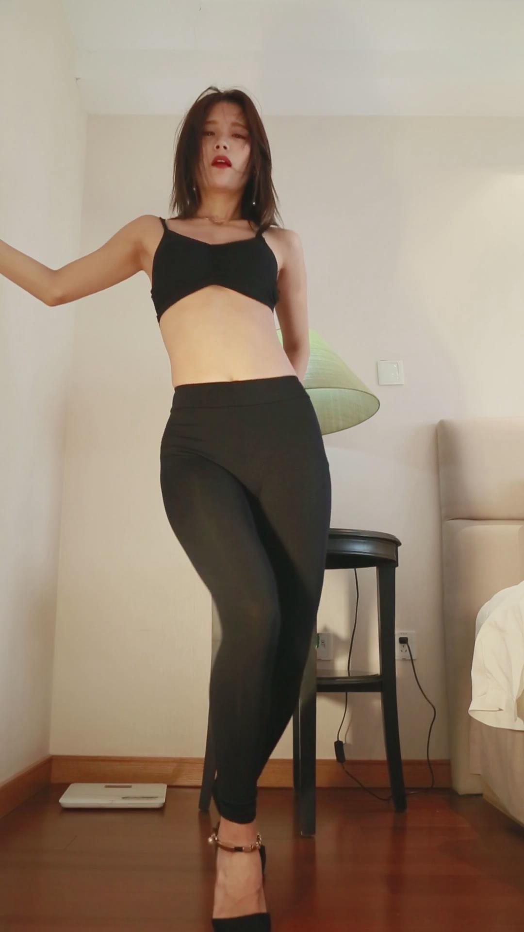 短衣黑色紧身裤好身材美女正面热舞慢摇视频 编号6817