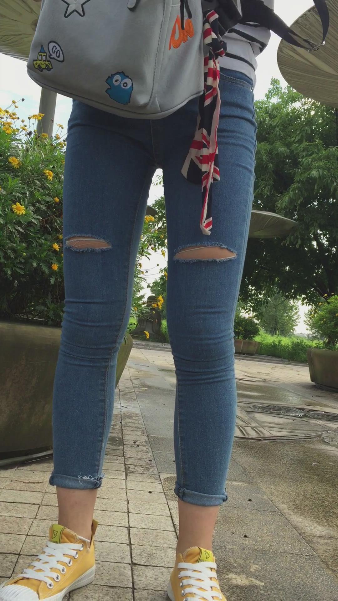 清纯蓝色牛仔裤条纹衫学妹外拍视频第二集 编号6856