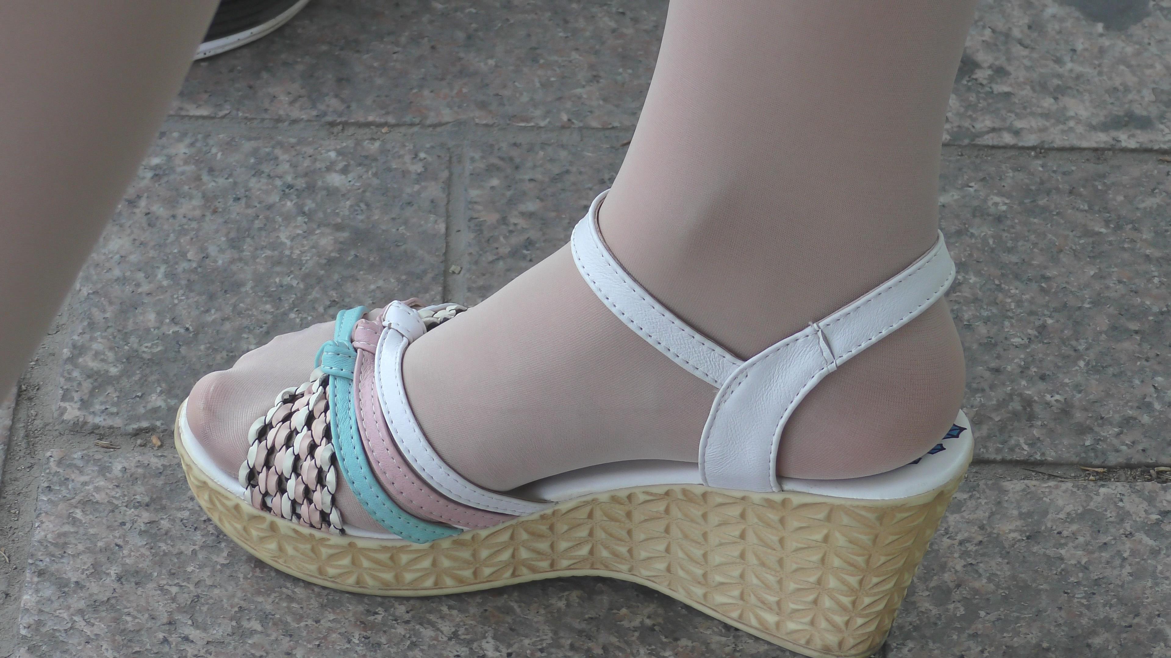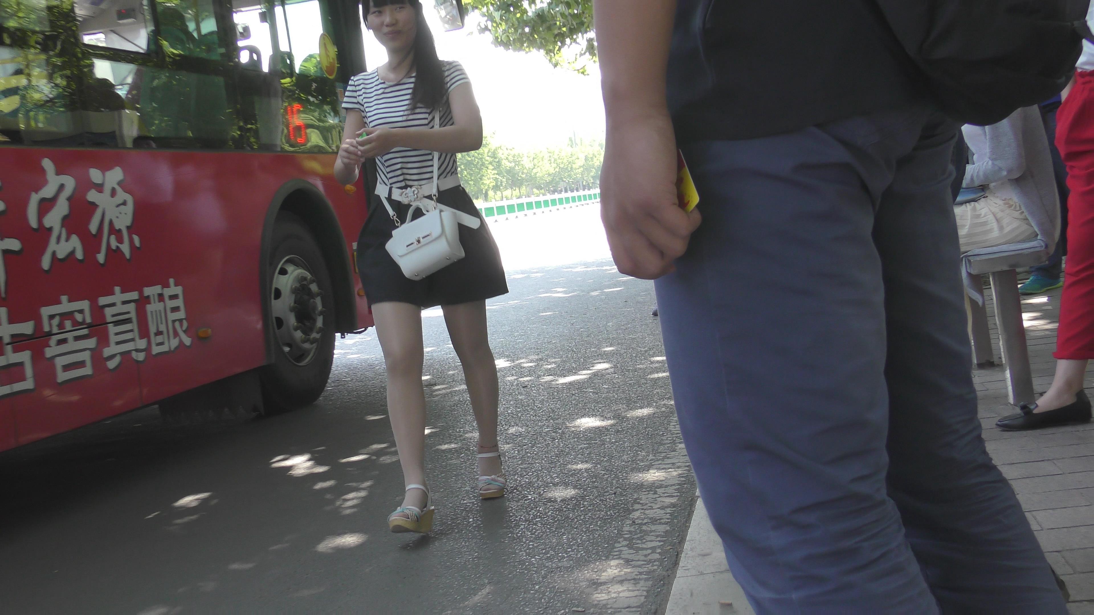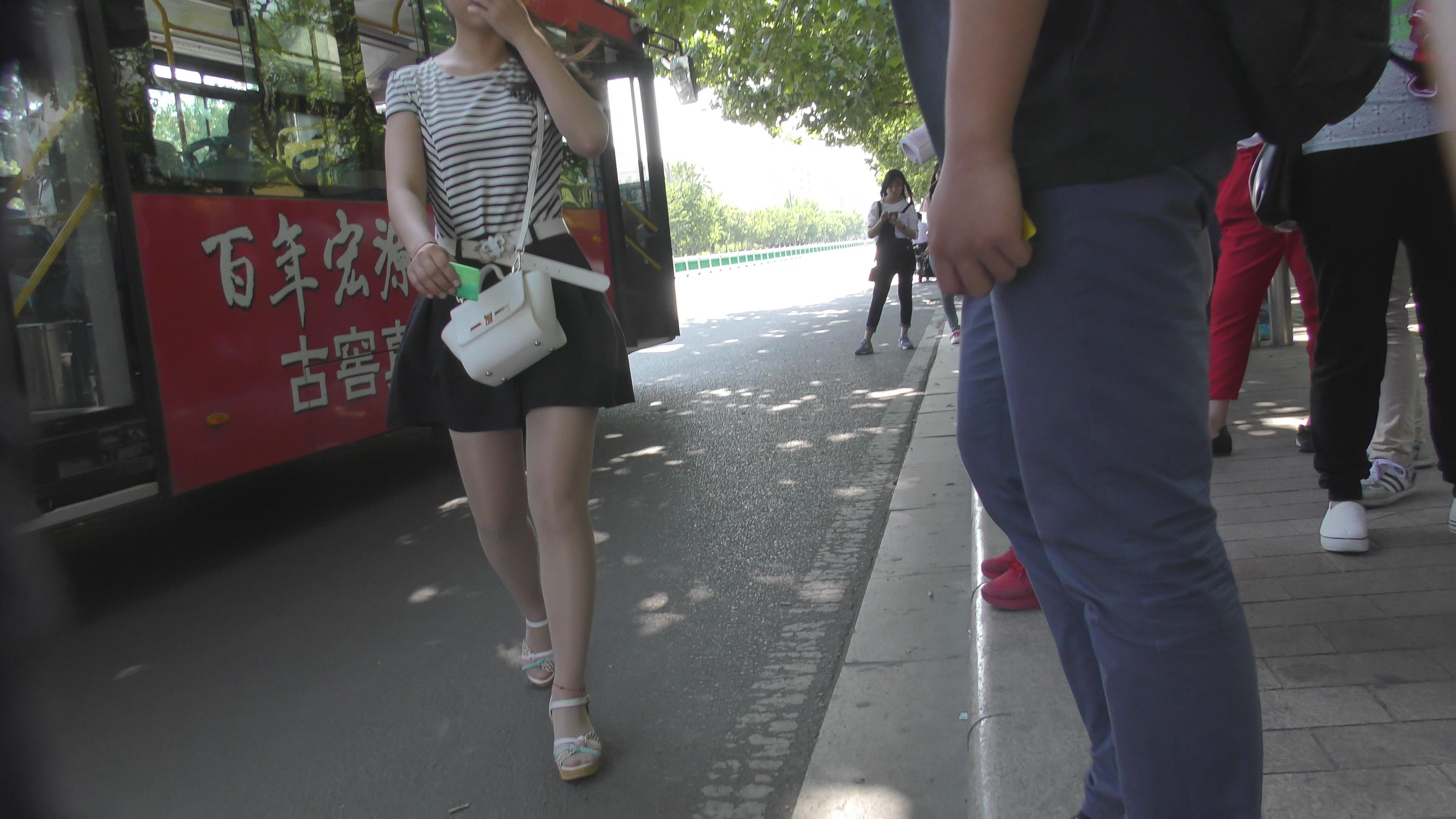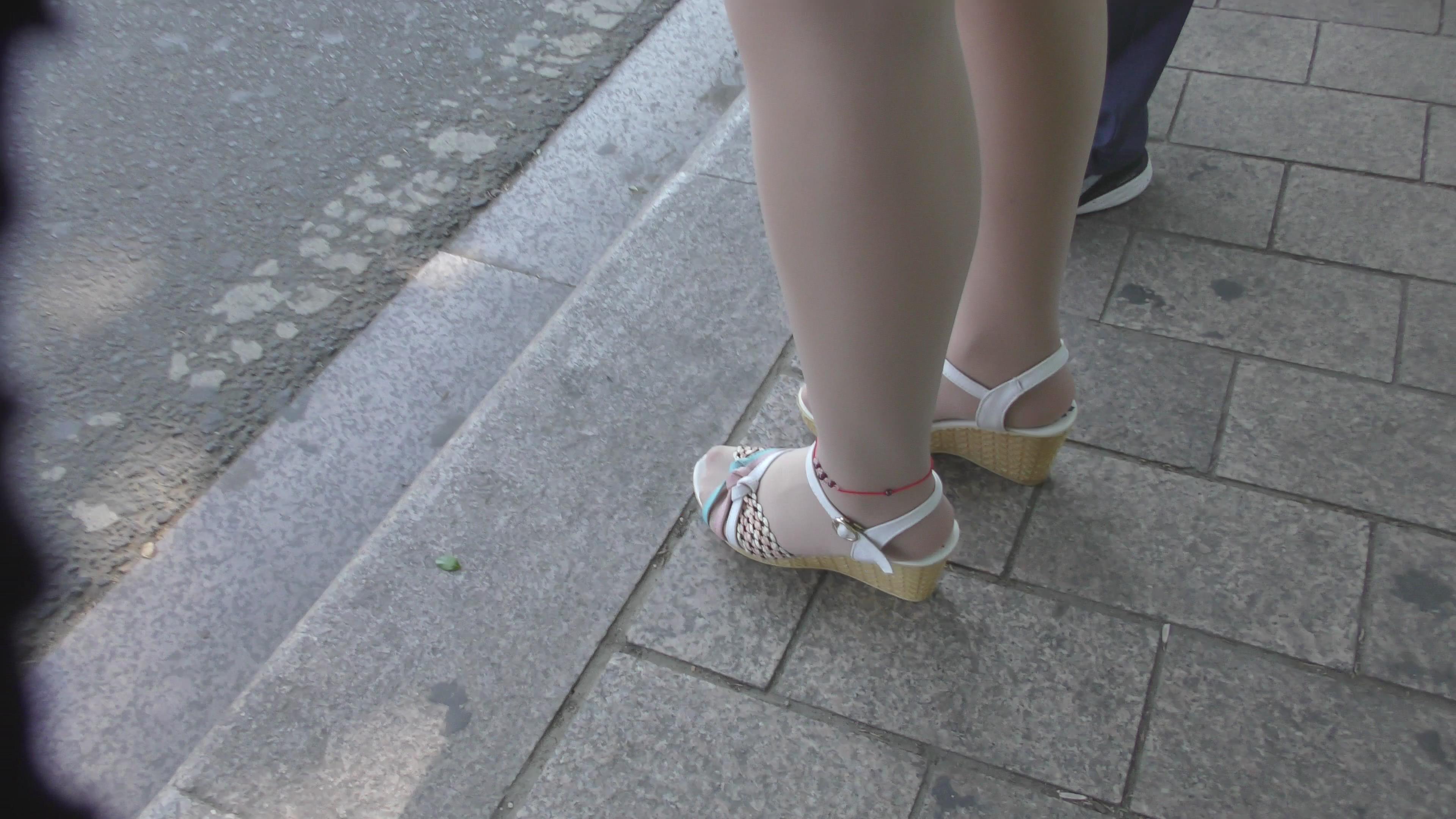 4k-等公交的肉丝袜城高跟凉鞋甜美女孩 编号6622