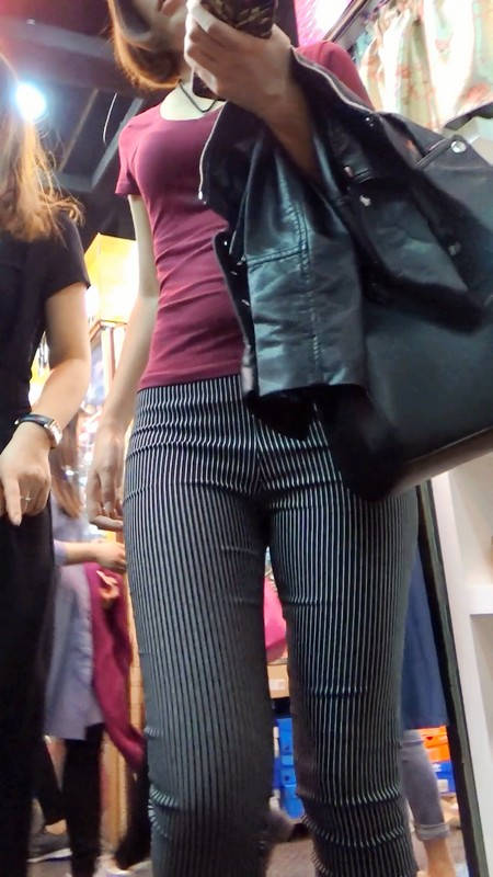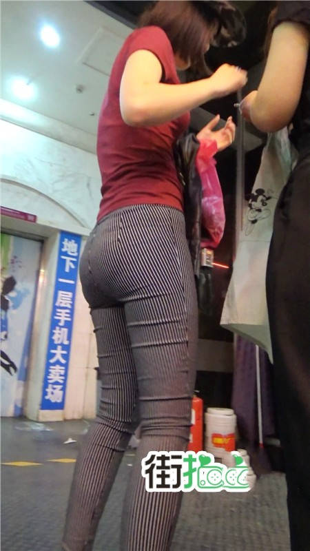 【编号752】街拍条纹布裤紧身丰臀美女