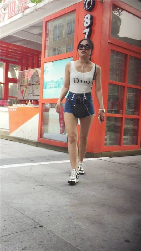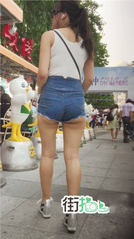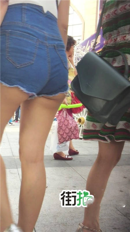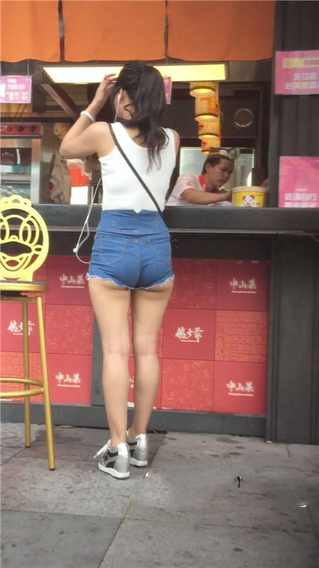 【编号771】街拍买奶茶的牛仔热裤美眉PP露出一半