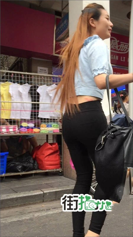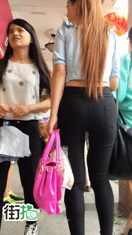 【编号779】街拍黑色紧身裤美女完美身材