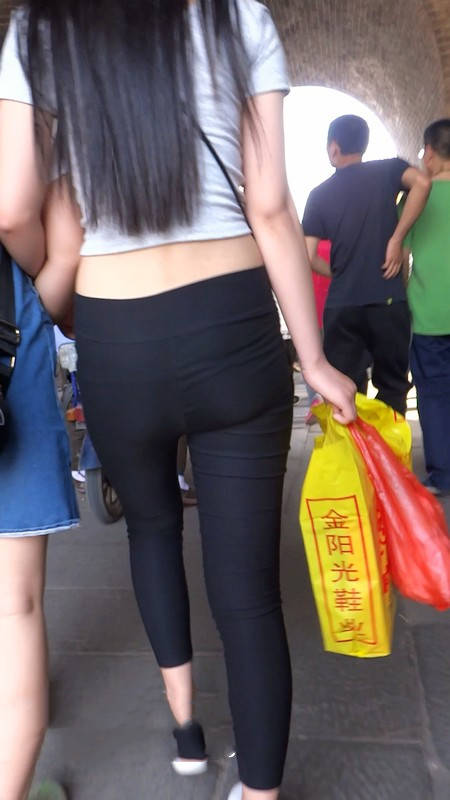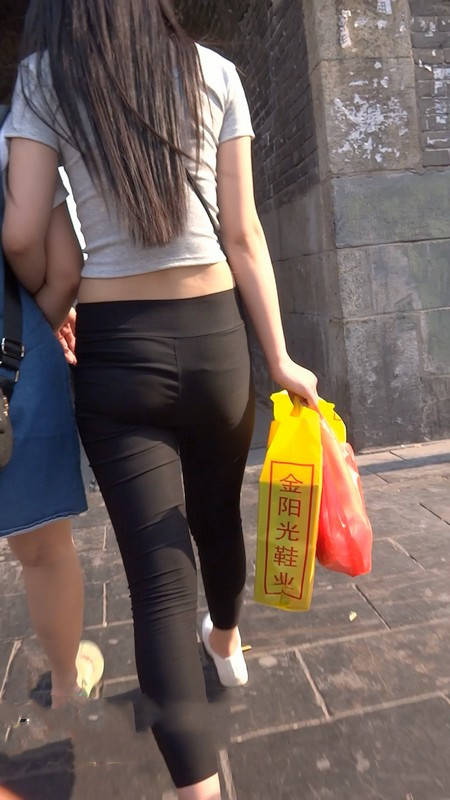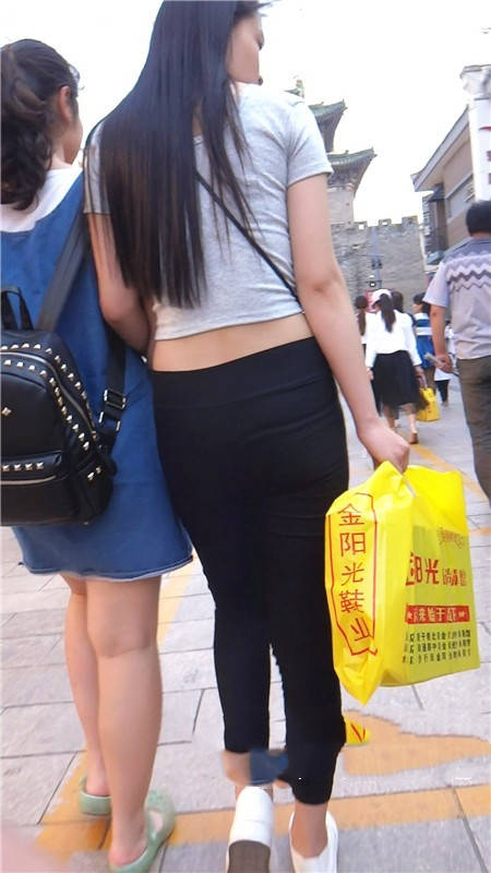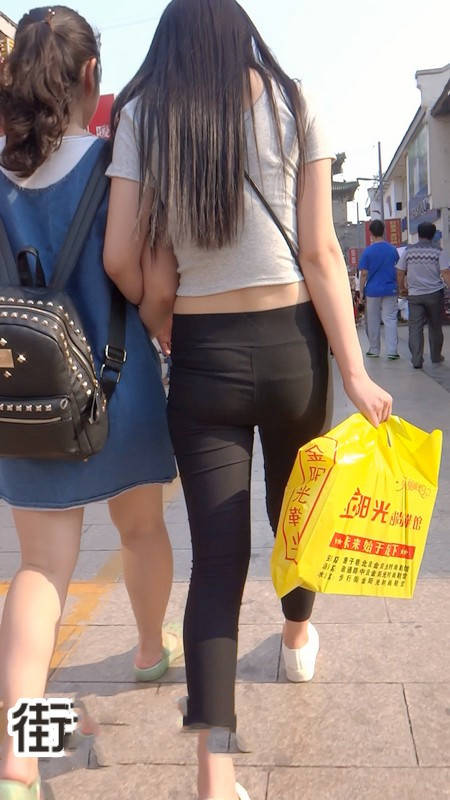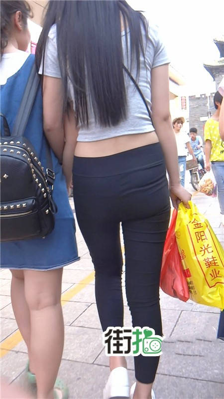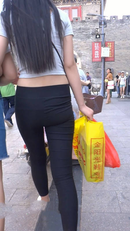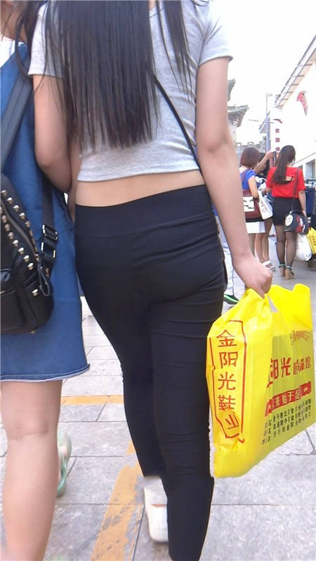 【编号790】街拍黑色紧身裤长发美女