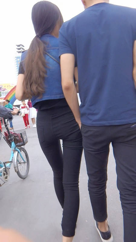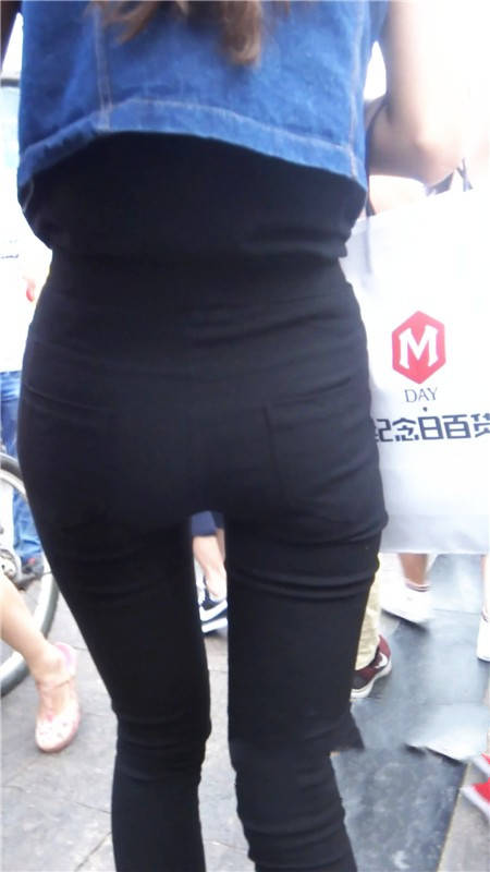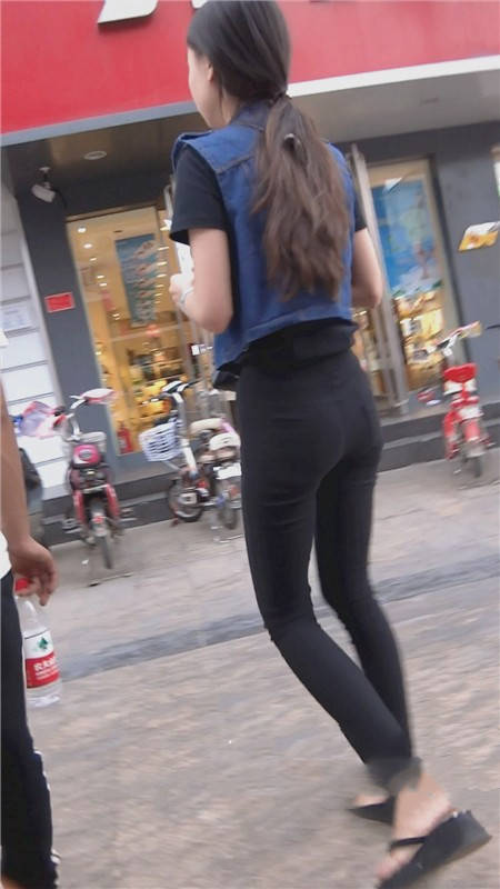 【编号800】街拍12分钟黑色紧身裤苗条时尚美女
