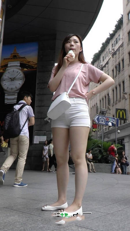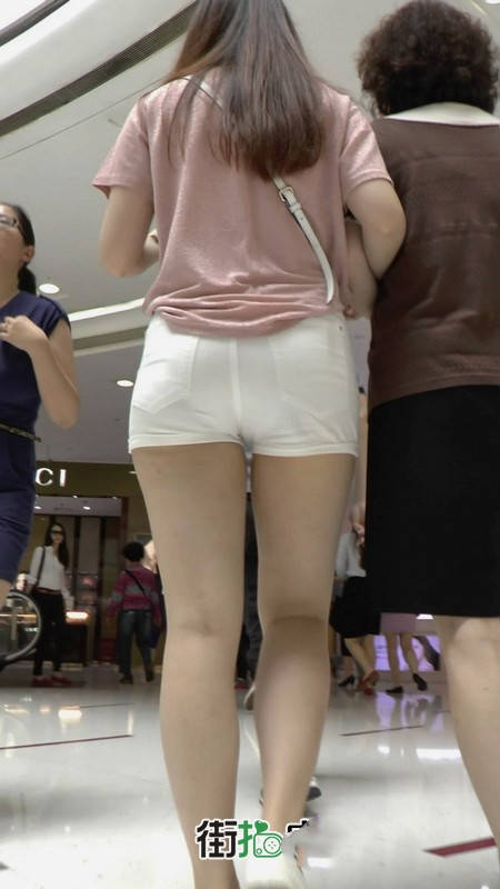 【编号843】街拍挽着妈妈手的白色短裤乖女儿