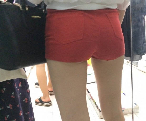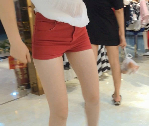 【编号853】街拍20分钟红色短裤长腿翘臀温柔MM