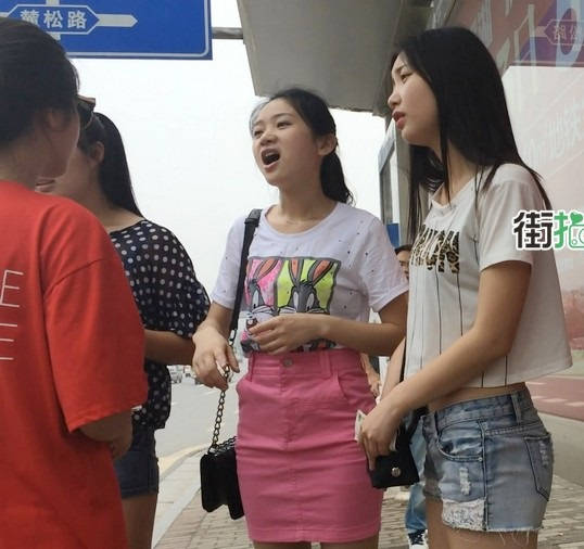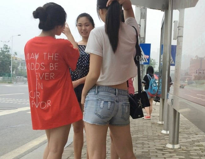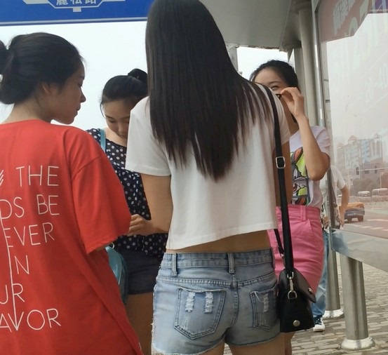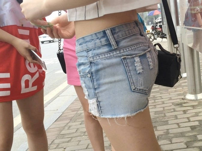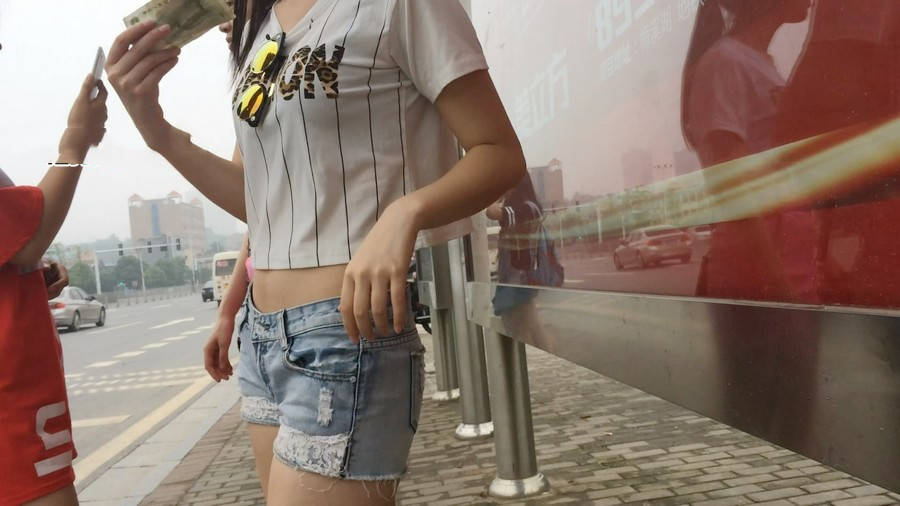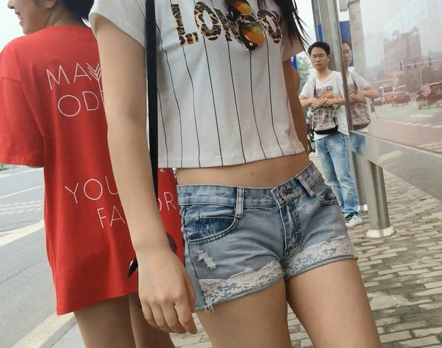 【编号854】街拍等公交的牛仔热裤小美女