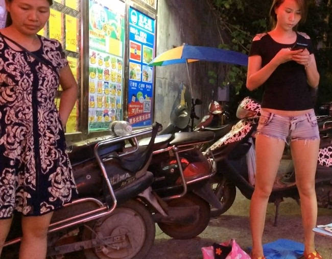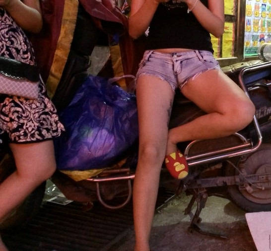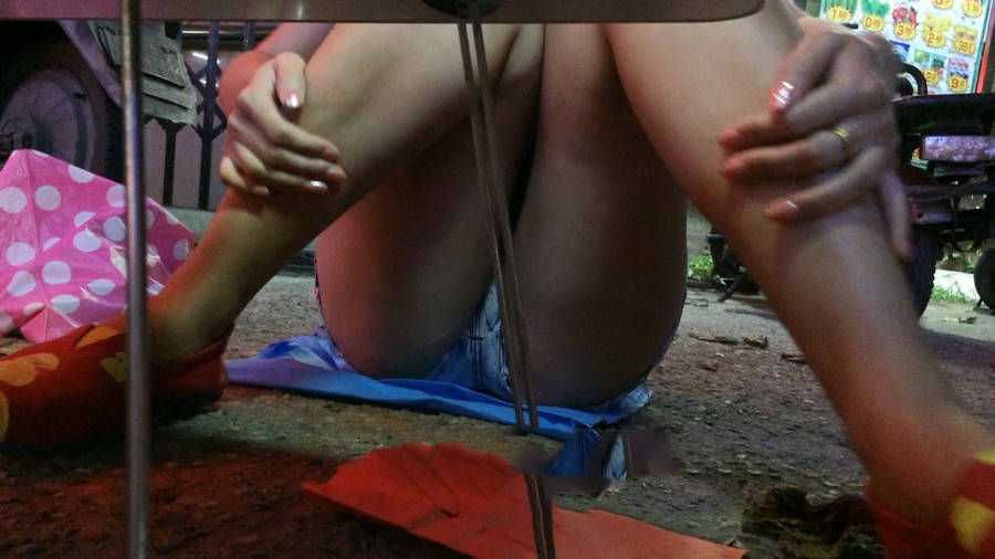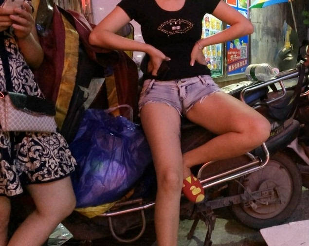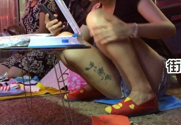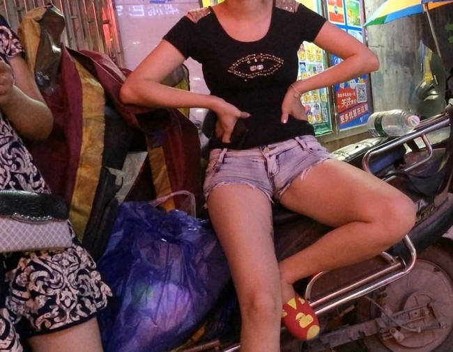 【编号869】街拍摆地摊的牛仔热裤太紧了