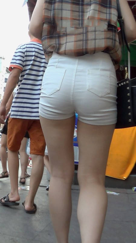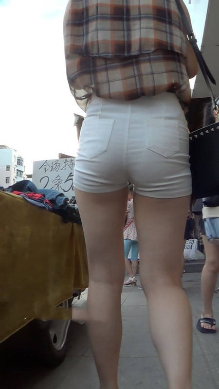 【编号920】街拍白色短裤紧绷肥臀高跟踩得响