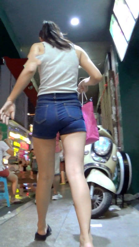 【编号925】街拍牛仔热裤长腿翘臀的小嫩妹