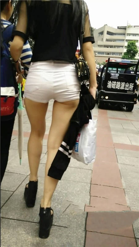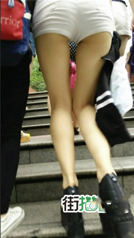 【编号1062】街拍白色紧身热裤长腿美女露月牙