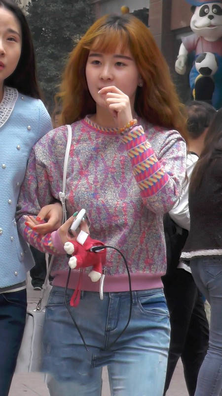 【编号1096】街拍清纯牛仔裤小妹与闺蜜逛街