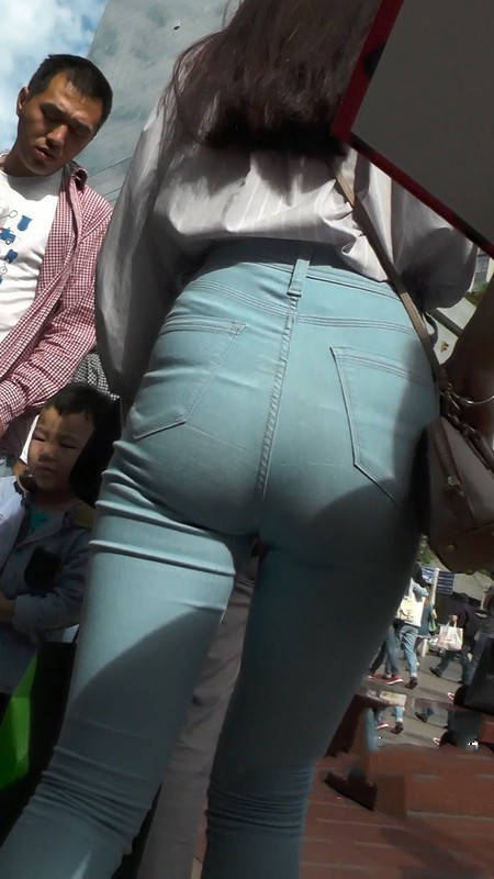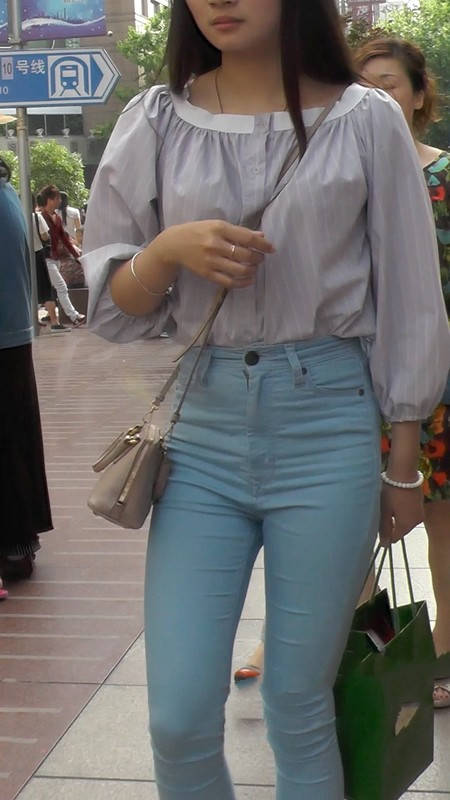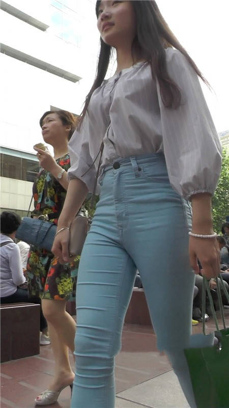 【编号1109】街拍浅蓝紧身牛仔裤长腿翘臀小妹