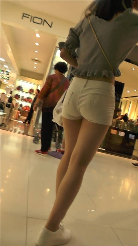 【编号1152】街拍白色紧身短裤翘臀小妹