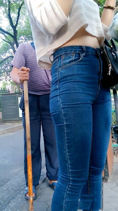 【编号627】等公交的巨臀牛仔女孩