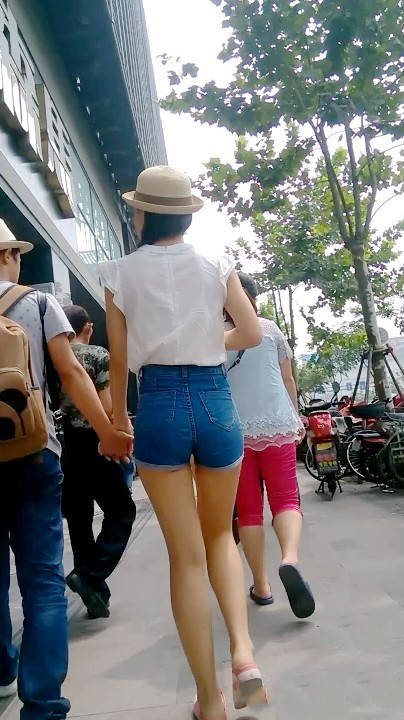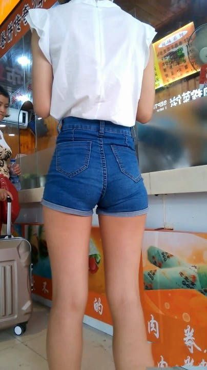 【编号628】满分长腿苗条紧身蓝牛热裤美女