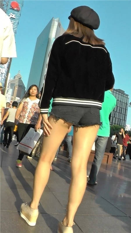 【编号1181】街拍黑色短裤清凉时尚小美女