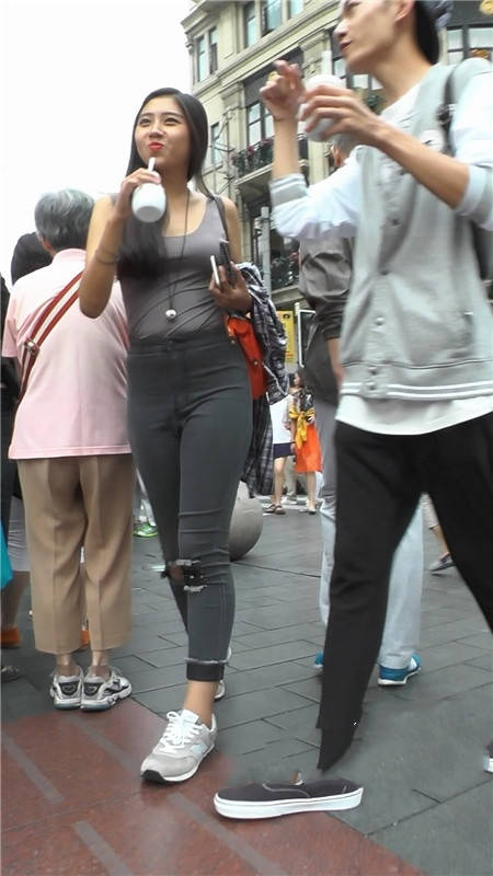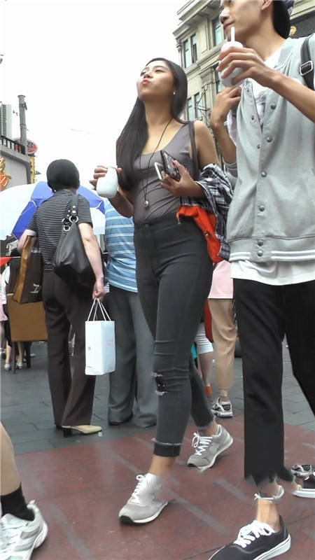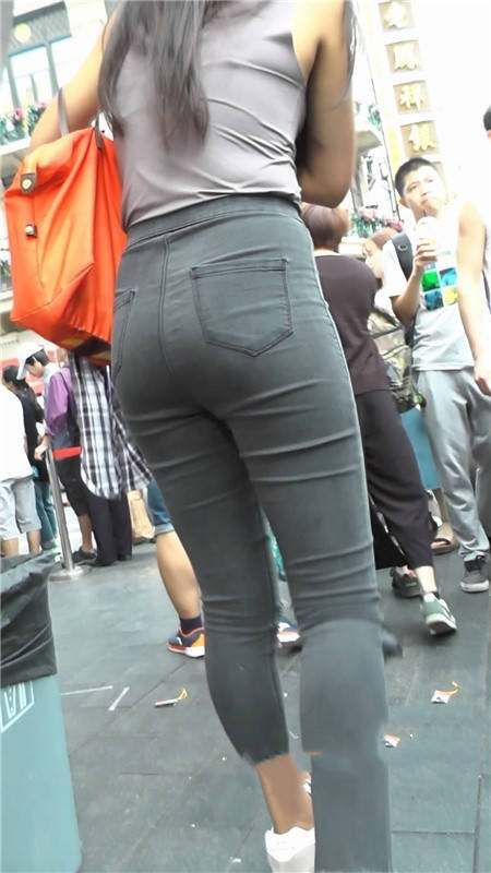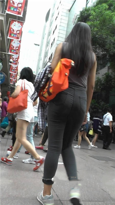 【编号1208】街拍黑色紧牛长发翘臀小妹
