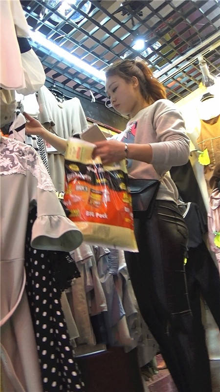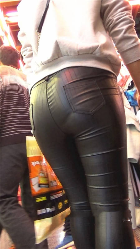 【编号1210】街拍20分钟黑皮裤女孩一路跟拍上地铁