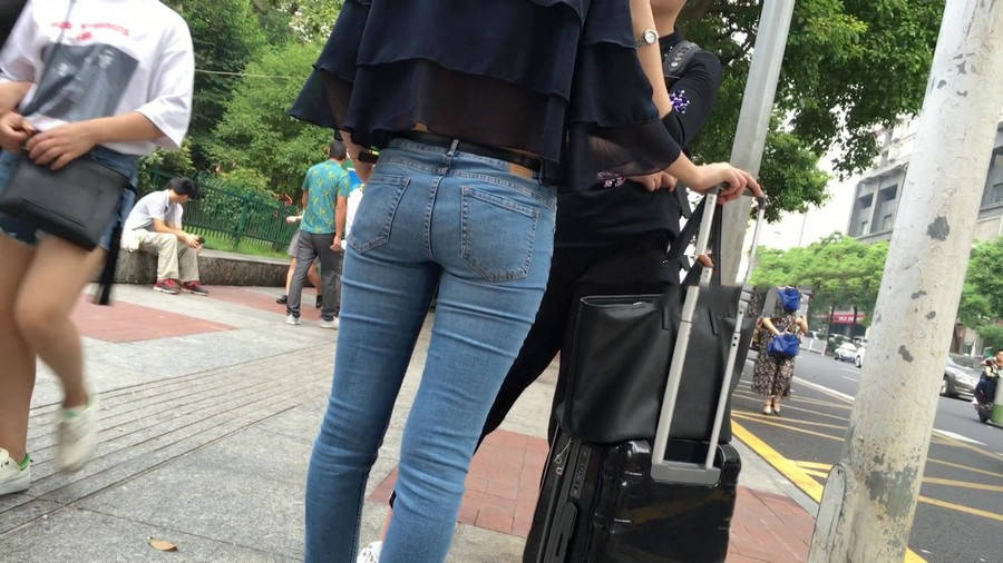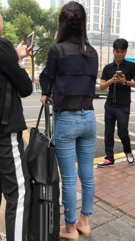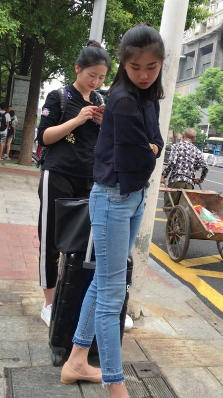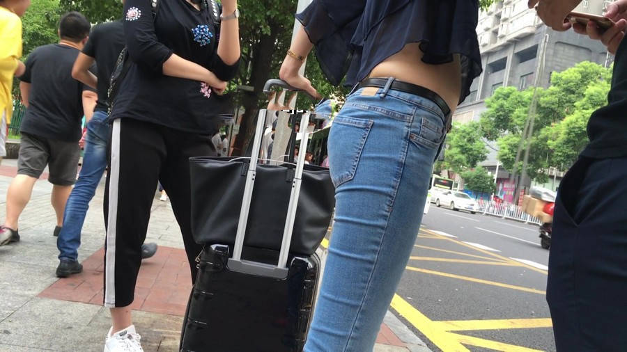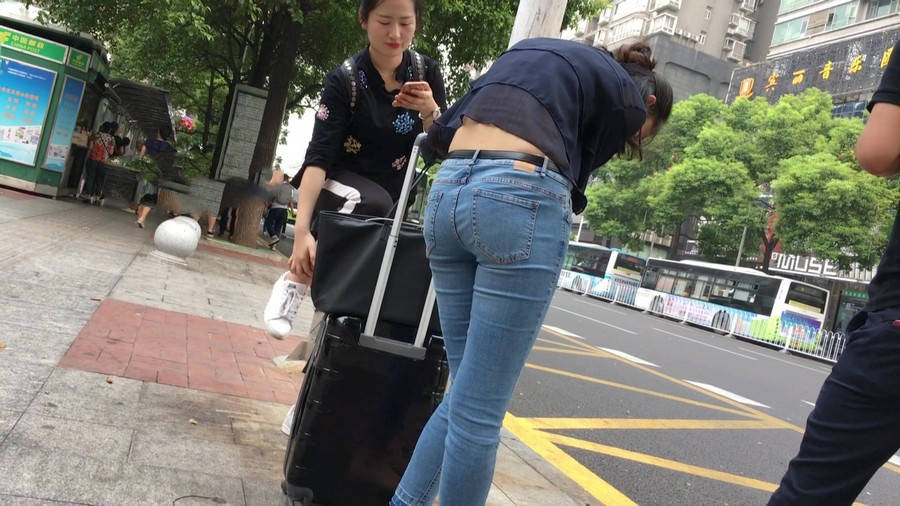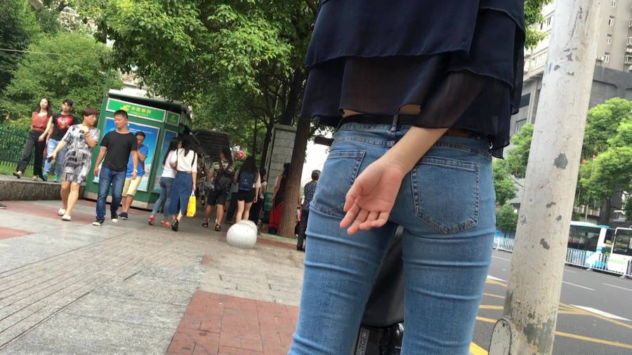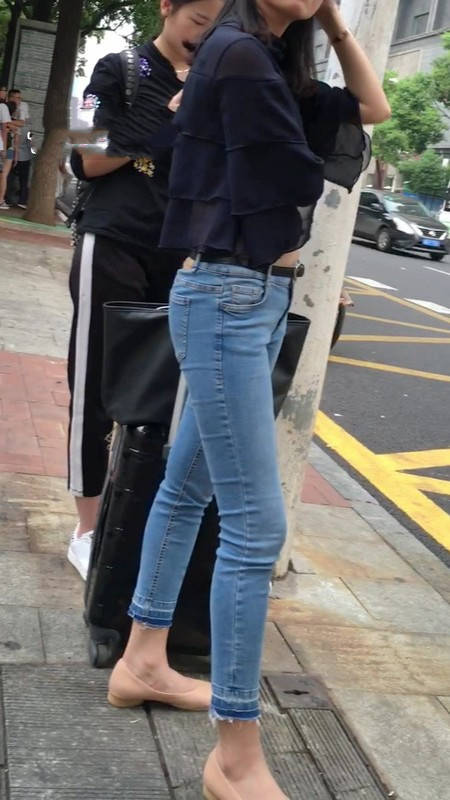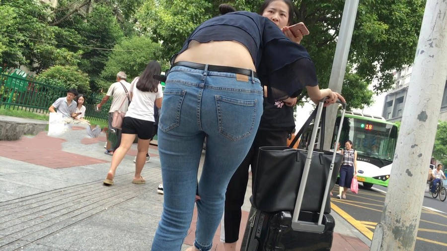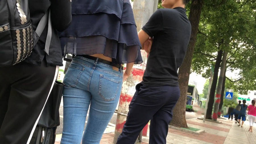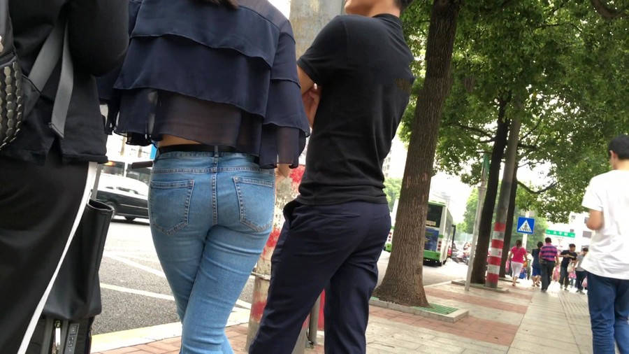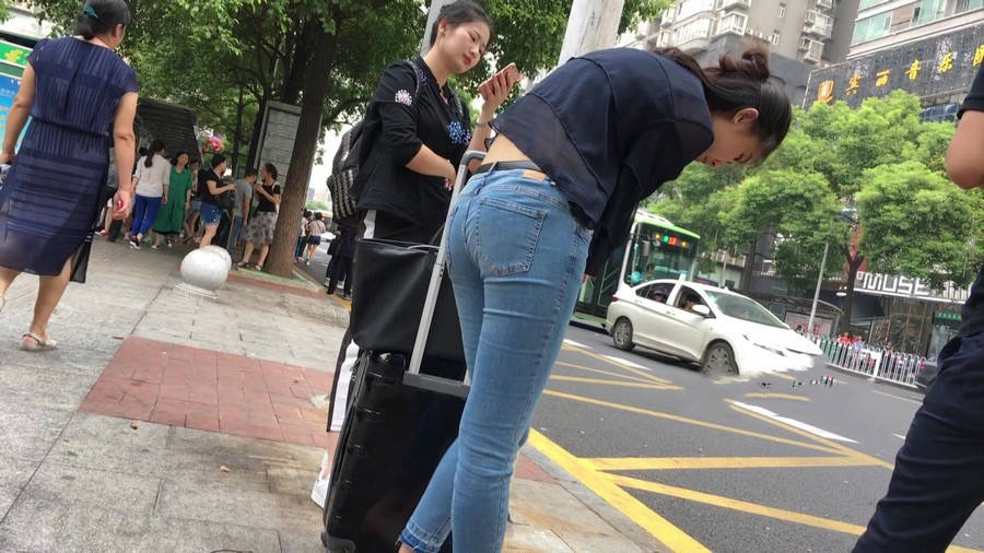 【编号1211】街拍公交站台的牛仔裤少女