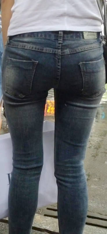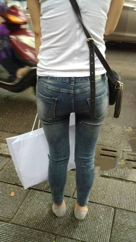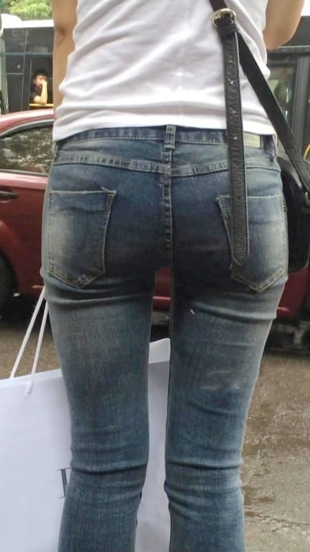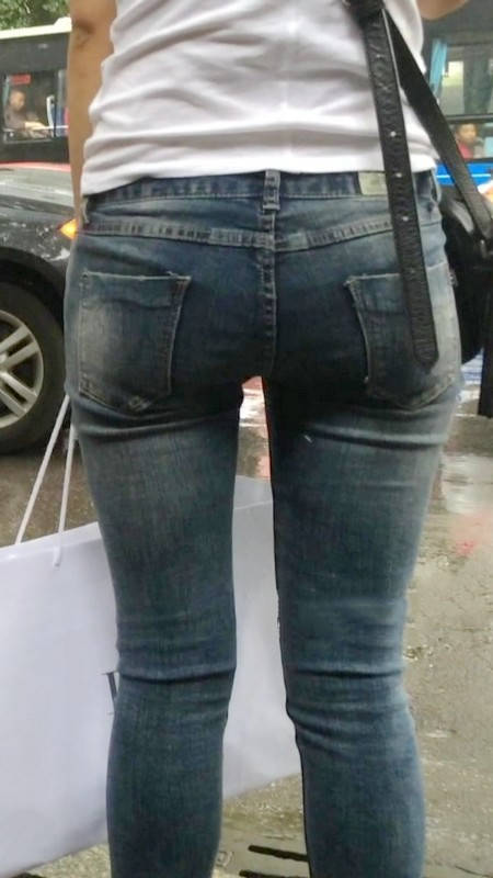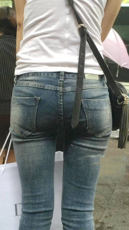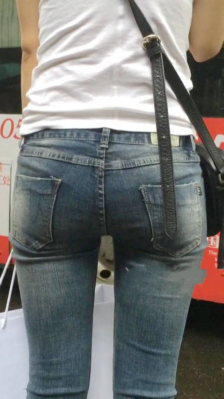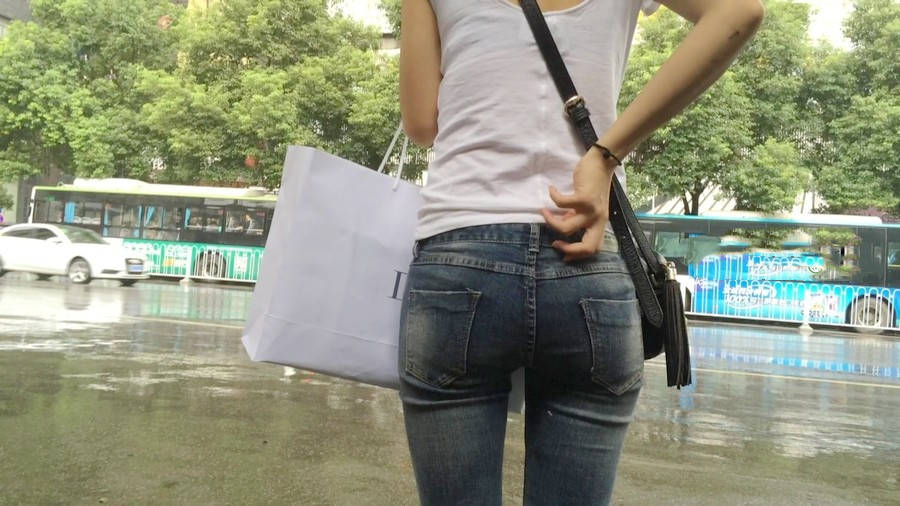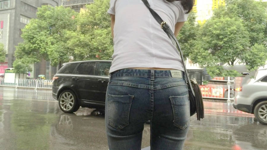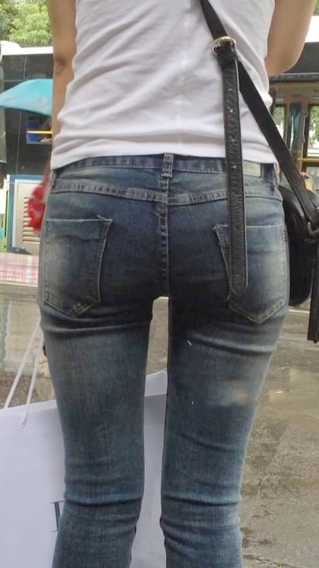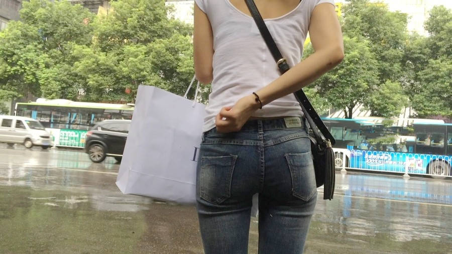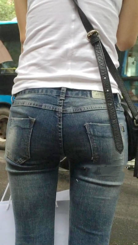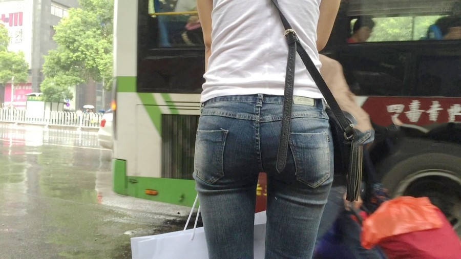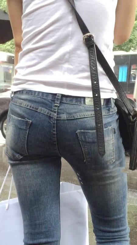 【编号1218】街拍紧牛白T苗条小妹等公交