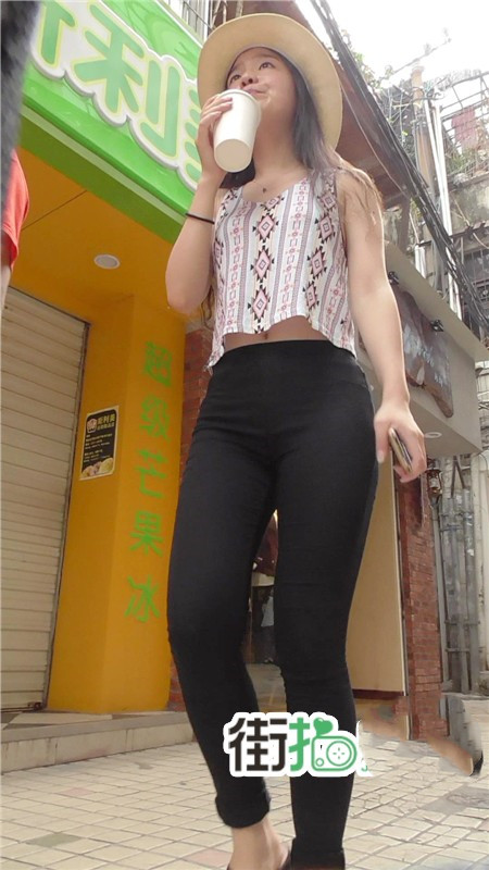 【编号729】街拍戴草帽的黑色紧身裤少妇