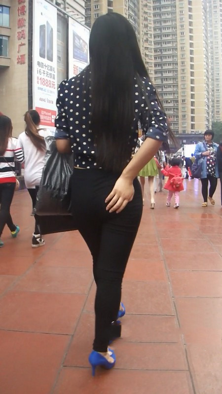 【编号794】街拍清纯长发黑裤女子