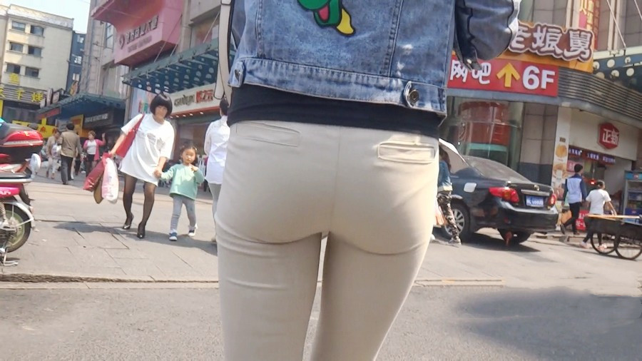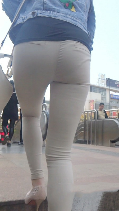 【编号809】街拍超级紧绷米色紧身裤内痕外显