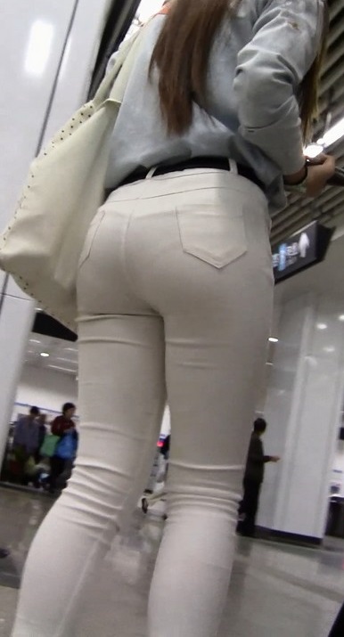 【编号823】街拍白色紧身裤妹妹在地铁迷路了