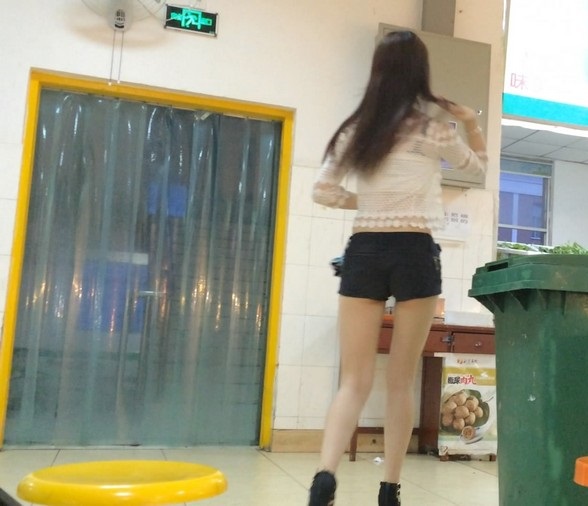 【编号868】街拍紧身短裤性感长腿美女
