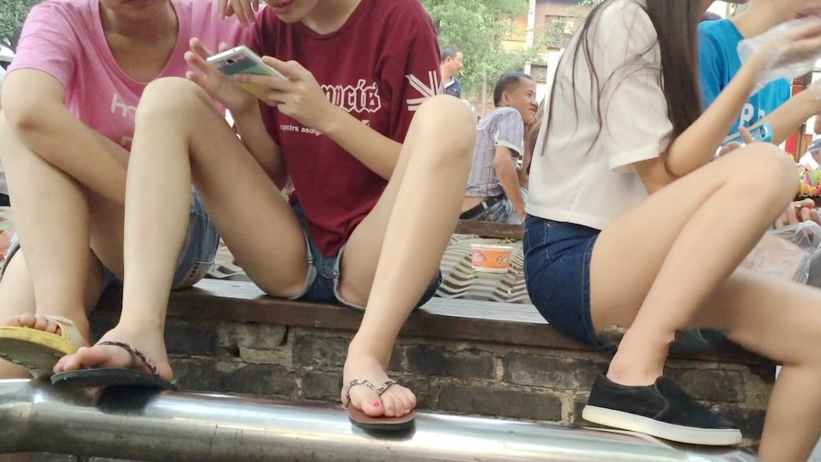 【编号879】街拍超短热裤MM的彪悍坐姿