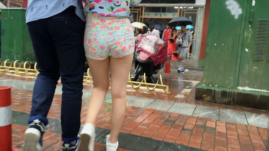 【编号891】街拍紧身花裤上台阶左右扭动