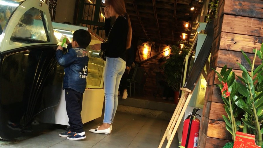 【编号910】街拍蓝牛少妇带小孩逛街