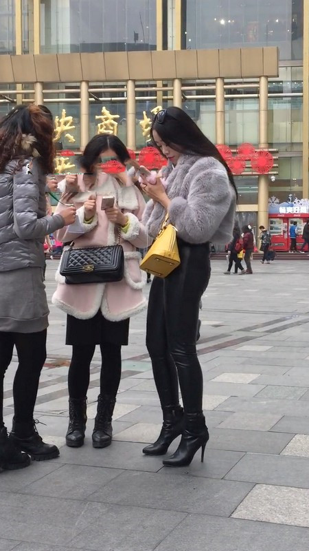 【编号1013】街拍妖娆美艳的皮裤俏少妇