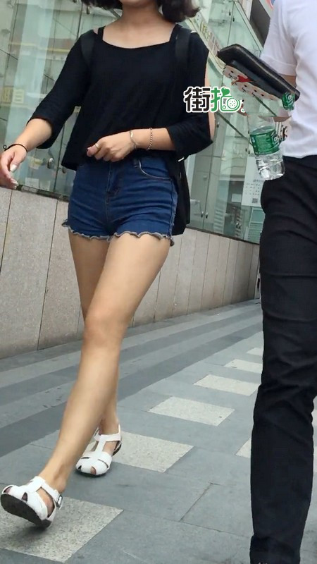 【编号1016】街拍牛仔紧身热裤妹妹上扶梯