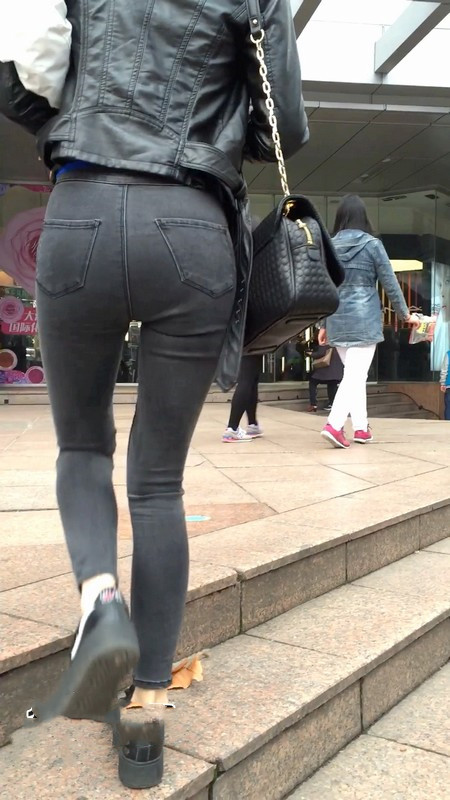 【编号1024】街拍黑色紧身裤少妇风骚扭动