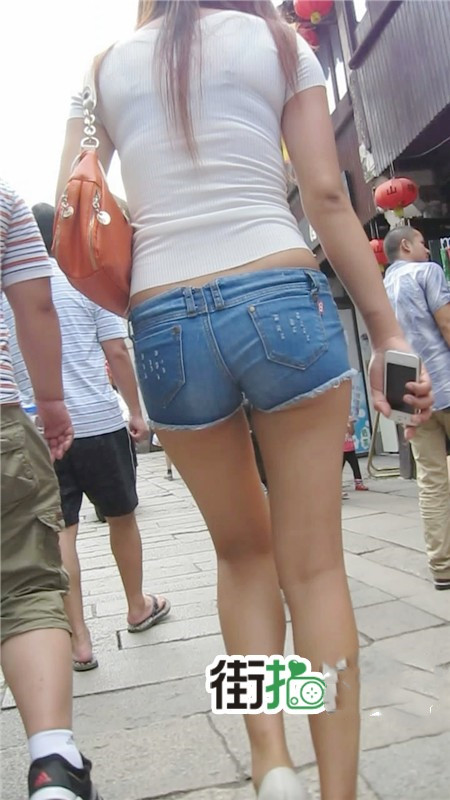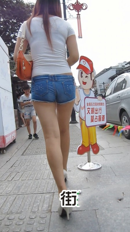 【编号1071】街拍蓝色紧身牛仔热裤小妞