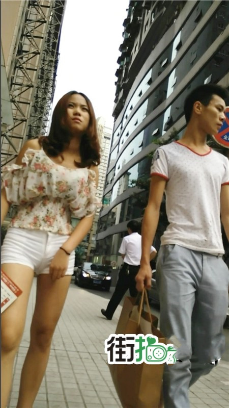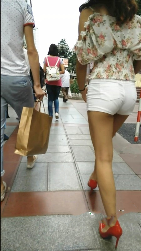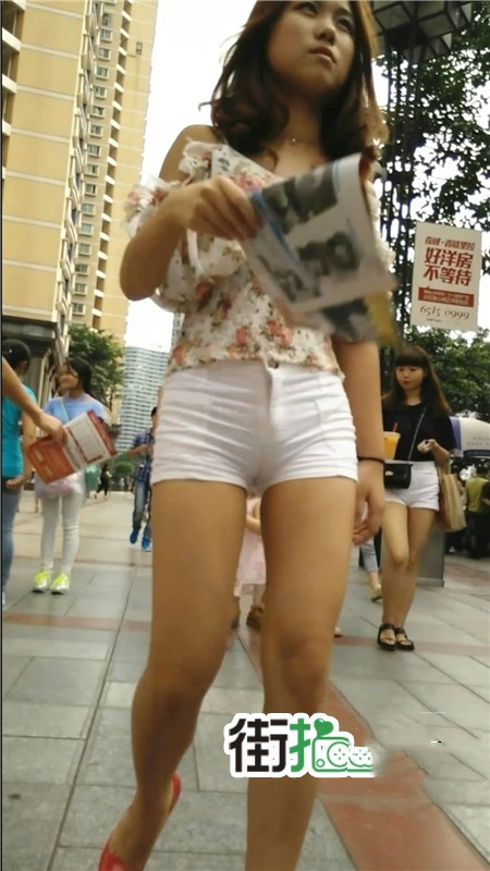 【编号1074】街拍白色紧身短裤苗条MM