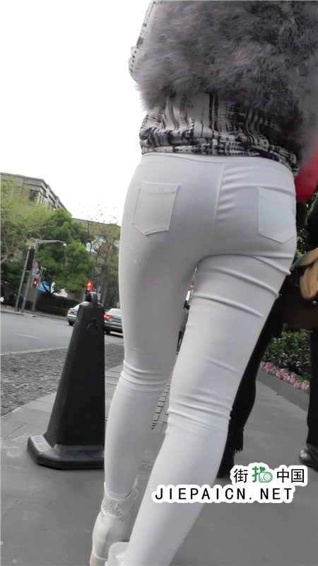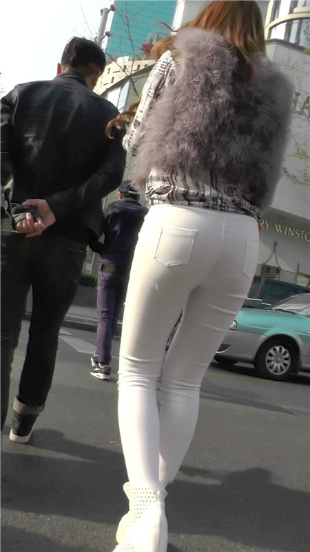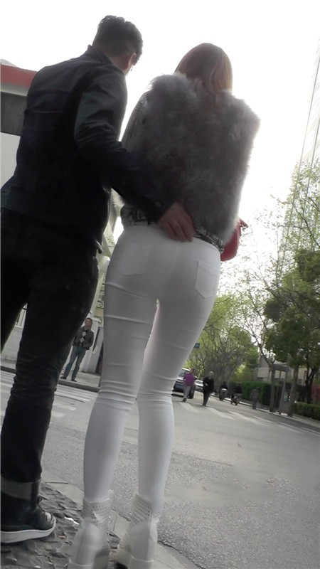 【编号1086】街拍白色紧身裤MM男友的手放哪里