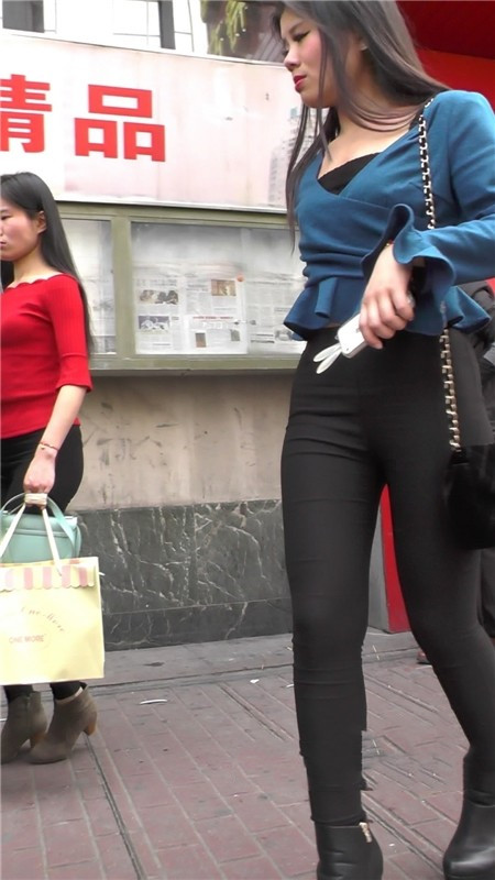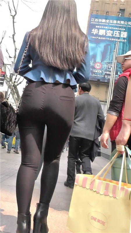 【编号1103】街拍黑色紧身裤肥臀女子