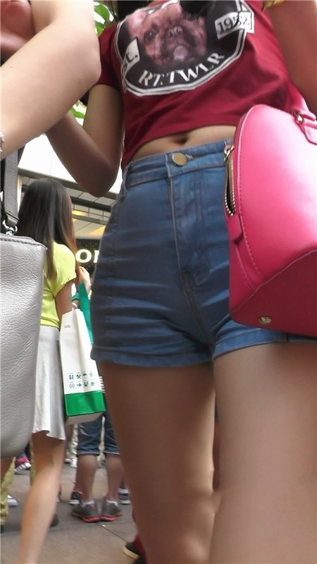 【编号1114】街拍牛仔短裤美腿女孩逛挑衣服