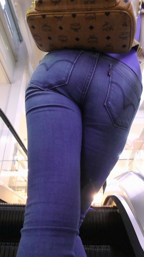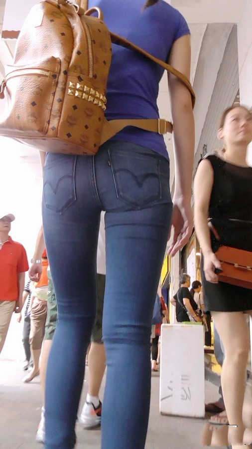 【编号560】尾行蓝牛苗条女子一路上扶梯